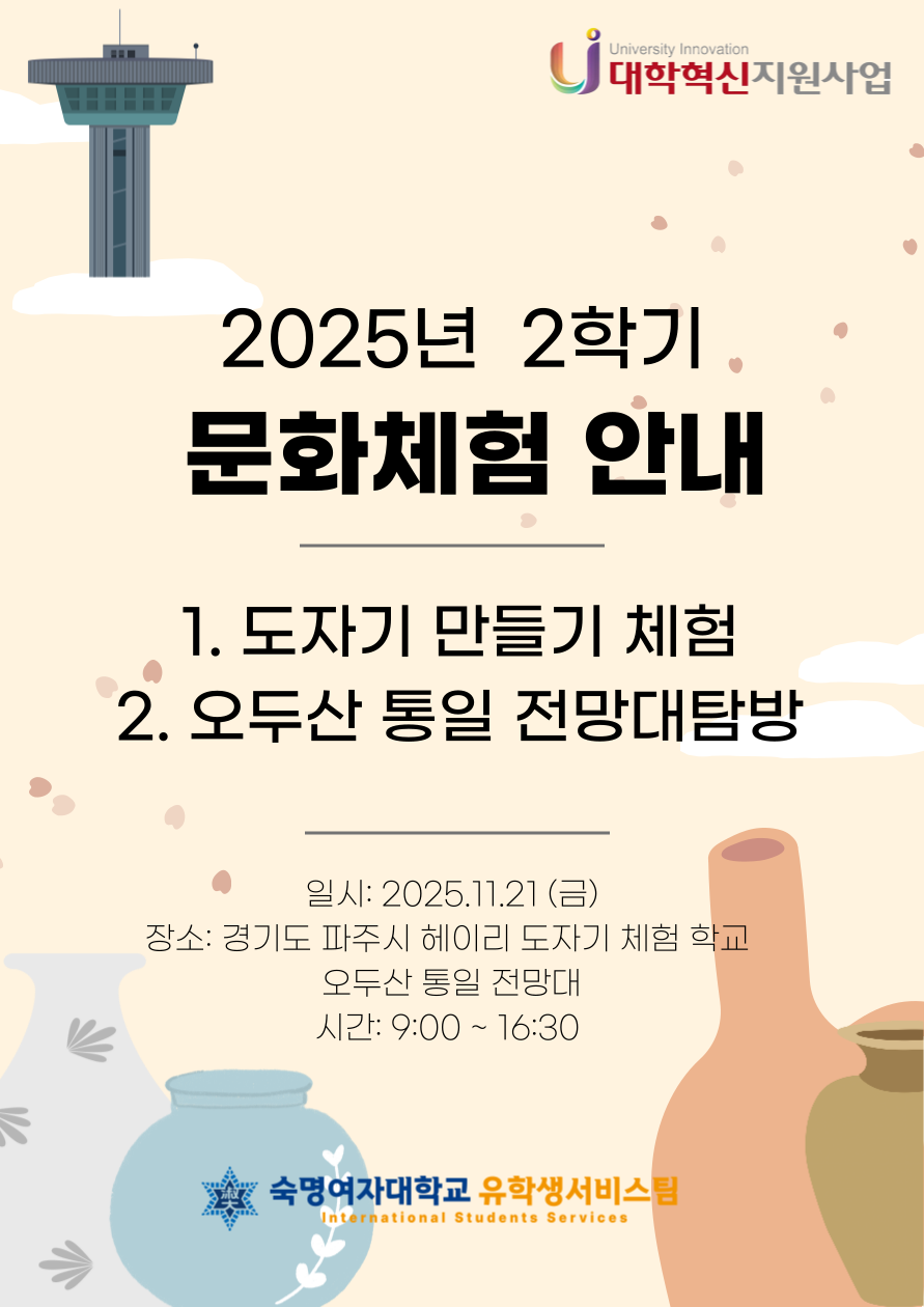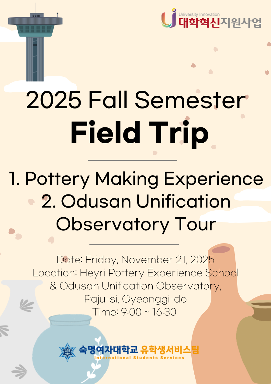 This semester, we’re going on a special trip together — a Pottery-Making Experience and a Visit to Odusan Unification Observatory!