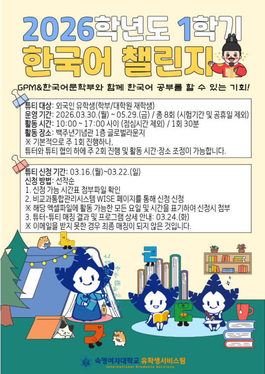 [2026학년도 1학기 외국인 유학생 한국어챌린지 신청 안내] / [2026 Spring Semester Korean Challenge Application Guide for International Students]