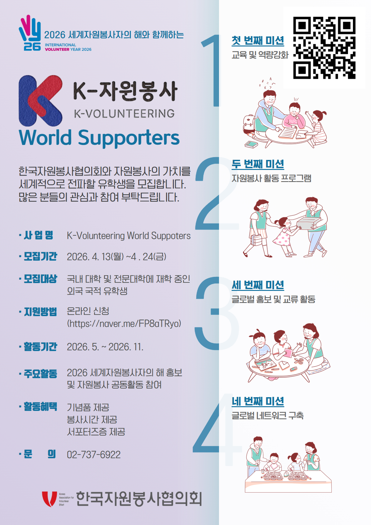 내 용 : 2026 세계자원봉사자의 해 홍보 및 자원봉사 공동활동 참여